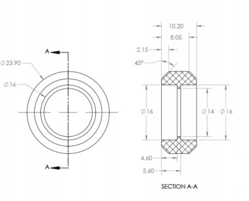 - średnica wewnętrzna: 5 mm