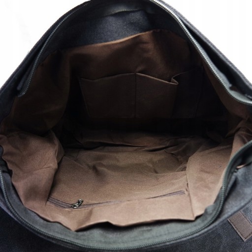 - Krój torby świetnie sprawdzi się jako zamiennik plecaka, dzięki pojemnej komorze mieszącej format A4.