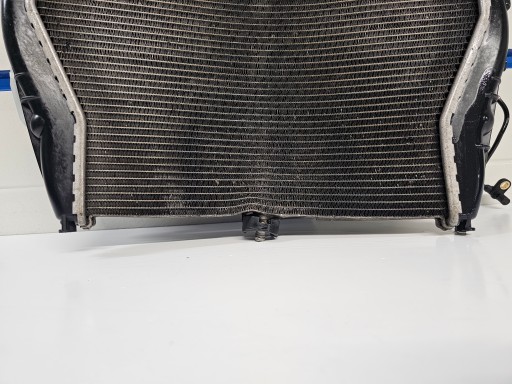 kompletna,szczelna chłodnica wody z wentylatorem i zbiorniczkiem,troche przekoszona,uszkodzona jak na foto ale szczelna.Uszkodzone czesci nie podlegają zwrotom!!!