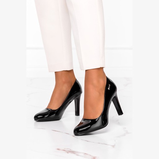 CZÓŁENKA DAMSKIE LAKIEROWANE WKŁADKA SKÓRA SŁUPEK
