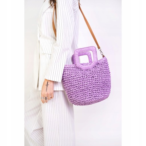 - pleciona, ażurowa, letnia torebka z impregnowanego papieru, stylizowana na koszyk o luźnym splocie