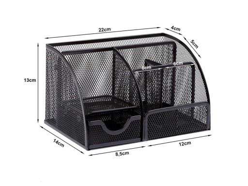 PRZYBORNIK ORGANIZER NA BIURKO 6 KOMÓR SZUFLADKA SIATKA METALOWY CZARNY