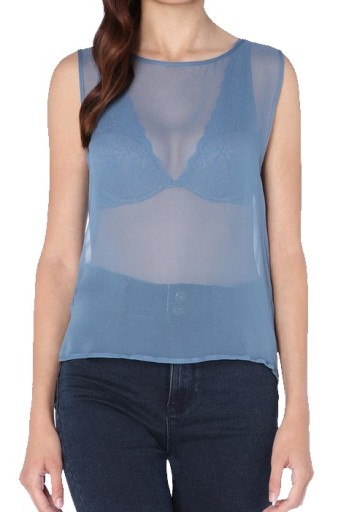 Top z jedwabiu typu mgiełka, dekolt wykończony jedwabną lamówką