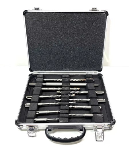 - 9 wierteł do młotów z uchwytem SDS-plus: 5x50x110mm, 6x50x110mm, 6x100x160mm, 7x50x110mm, 7x100x160mm, 8x50x110mm, 8x100x160mm, 10x100x160mm, 12x100x160mm