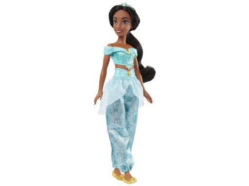 Poznaj lalkę Księżniczka Jasmine, zainspirowaną hojną i odważną bohaterką z Disney's Aladdin. Ta ruchoma modna lalka jest pokazana w błyszczącym stroju i z akcesoriami, takimi jak buty i tiara. Lalka nie może stać samodzielnie.
