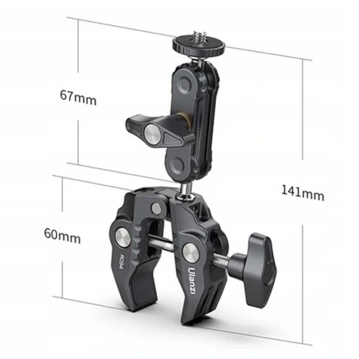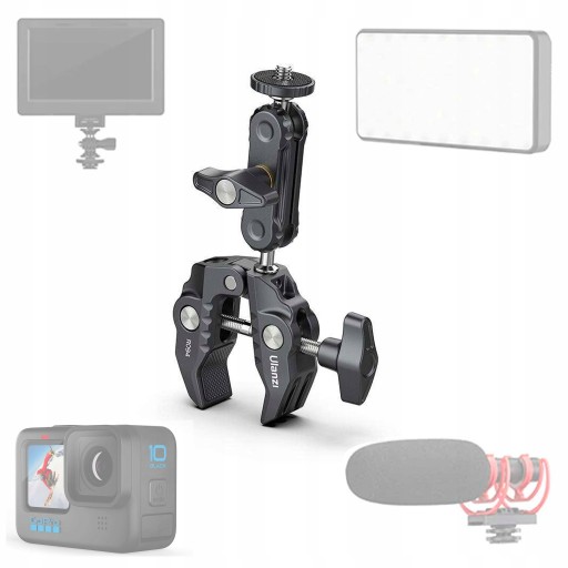 Uchwyt posiada standardowe gwinty 1/4".Gwint żeński 1/4" zacisku ułatwia montaż małej kamery, monitora, lampy wideo LED, mikrofonu lub lampy błyskowej.