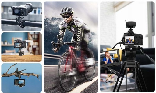 Głowica idealnie nadaje się do mocowania monitorów poglądowych LCD przy aparatach, kamerach, gimbalach, statywach i innych urządzeniach w standardowym gwincie mocującym 1/4''. Głowica posiada również płynną regulację położenia w zakresie 360 stopni zarówno w poziomie jak i pionie.
