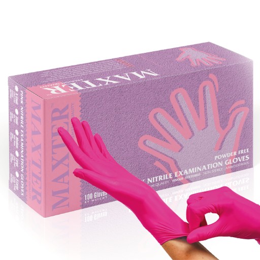 Rękawice Nitrylowe Rękawiczki Różowe Pink Jednorazowe M Maxter 100 szt.