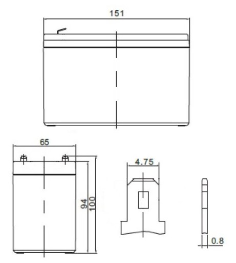 - Konektory/Terminal/Podłączenie: faston 187 (4.75×0.8mm) (wąskie)