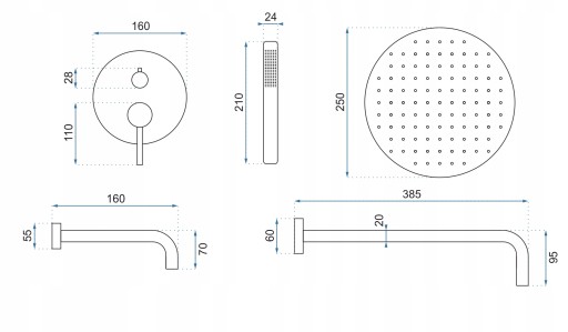 Zestaw zawiera: Deszczownicę, ramię, baterię, słuchawkę, wąż, wylewkę, system BOX ułatwiający montaż.