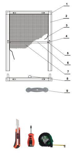 4) obrotowych uchwytów mocujących + wkręty samowiercące w ilości uzależnionej od wielkości moskitiery