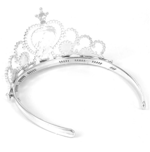 - Korona, zdobiona różowymi błyszczącymi kryształkami, srebrna, rozmiar uniwersalny,