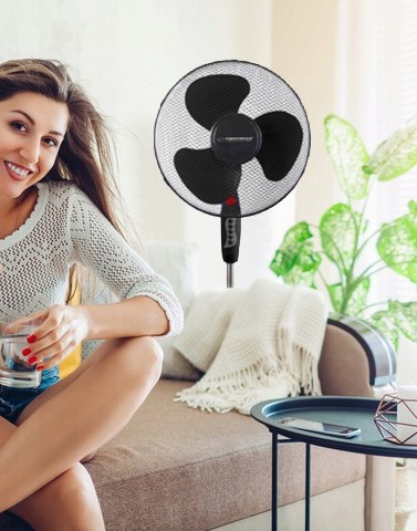 Wyposażony w funkcję automatycznej oscylacji, dzięki czemu może obracać się w kierunkach bocznych. Zwiększa to zasięg oddziaływania urządzenia. Dodatkowo kierunek nadmuchu można regulować zmieniając ręcznie kąt nachylenia głowicy. Solidna podstawa zapobiega upadkowi, a możliwość regulacji wysokości za pomocą rury teleskopowej, pozwala dodatkowo na ustawienie odpowiedniego pułapu nawiewu.