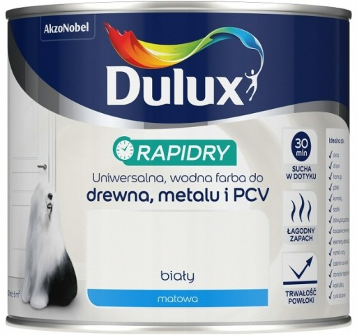 ✔ Emalia Dulux Rapidry przeznaczona jest do malowania odpowiednio przygotowanych powierzchni drewnianych i metalowych, takich jak: