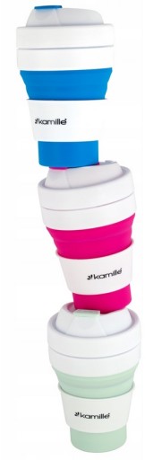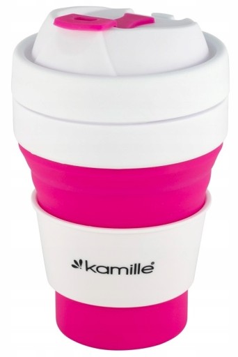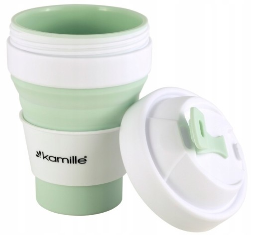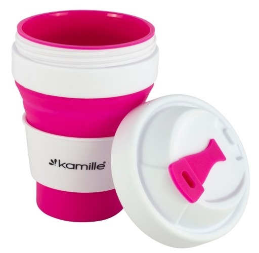 Składany silikonowy kubek Kamille jest niezbędny w samochodzie, idealnie nadaje się do pracy lub na dłuższe wyprawy tak w chłodniejsze jak i ciepłe dni. Klasyczny składany kubek marki Kamille szybko zapada się w szczelny dysk. Posiada pokrywkę i rękaw termiczny, aby chronić dłoń przed gorącymi lub zimnymi napojami.