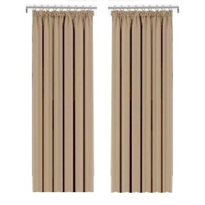 Zasłona uszyta na taśmie marszczącej typu ołówek , posiada tunel na rurkę.Uszyta z tkaniny poliestrowej powlekanej jednostronnie poliuretanem .