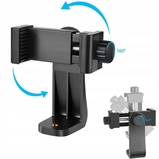Uchwyt do telefonu na statyw jest wyposażony w uniwersalny gwint 1/4".To oznacza, że możesz podpiąć smartfona do dowolnego statywu, aparatu, DSLR lub innych akcesoriów.