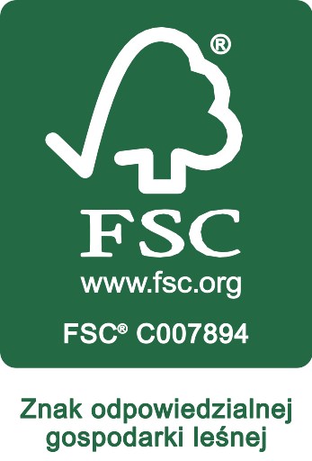 - Logo FSC oznacza, że produkt został wytworzony z drewna pochodzącego z lasów spełniających Zasady Dobrej Gospodarki Leśnej, wypracowane przez międzynarodową organizację Forest Stewardship Council.