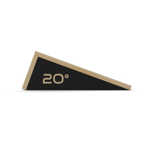 Model RFT-18620 posiada platformę ustawioną pod kątem 20°. Podest wykonany jest z wytrzymałej, antypoślizgowej sklejki, która zapewnia stabilność i zapobiega zsunięciu. Każdy klin posiada oznaczenia stopni oraz wygodny uchwyt do przenoszenia.