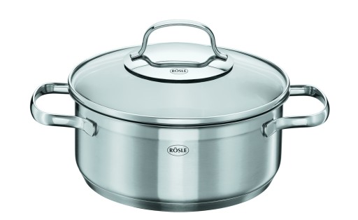 RÖSLE ELEGANCE Topfset, 10-tlg., Edelstahl 18/10, 2-ton-poliert, mit Töpfen, Glasdeckel, Pfanne beschichtet, Innenskalierung, induktionsgeeignet, spülmaschinengeeignet