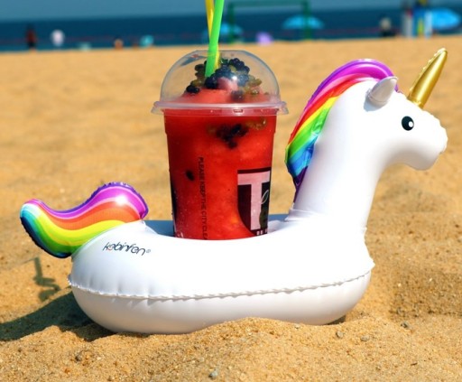 Zabawny gadżet - pływający, dmuchany unicorn na napoje będzie świetną ozdobą każdej imprezy. Nadaje się również do zabawy w kąpieli.