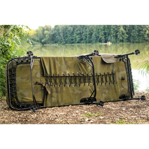 Wykorzystuje 4-sezonowy śpiwór zasuwany suwakiem, przypięty do łóżka Nowe zestawy do spania SK-TEK są cieplejsze, lżejsze i bardziej kompaktowe niż kiedykolwiek wcześniej. Łóżko karpiowe ARMATEK jest wyposażone w rewolucyjną konstrukcję ramy Stance™. Pozwala to przestawić 2 zewnętrzne nóżki w optymalną pozycję, zapewniając dodatkową stabilność - podpiera łóżko na całej długości. Aby śpiwór był cieplejszy, opracowaliśmy system mocowania Xpanda™, dzięki czemu izolacja śpiwora dopasowuje się do ciała, zachowując przy tym pełną wygodę spania. Dlatego jest lżejszy, cieplejszy i bardziej kompaktowy. Ramę wykonano z solidnej stali i aluminium z podparciem odcinka lędźwiowego, którego twardość można dopasować do własnych potrzeb. Podwójne zawiasy zapewniają całkowicie płaski profil łóżka i umożliwiają łatwiejsze składanie łóżka nawet ze śpiworem.