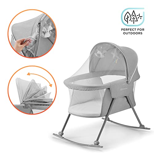 Kinderkraft Kinderbett 3 in 1 LOVI, Kinderreisebett, Stubenwagen, Babywiege, Baby Wippe, Zusammenklappbar, Einfach Transport, mit Zubehör, Tasche, Moskitonetz,von Geburt bis 9 kg, Grau