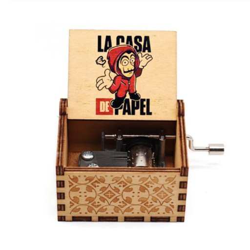 Drewniana pozytywka na korbkę z melodią z serialu DOM Z PAPIERU. Pokręć korbką i usłysz swoją ulubioną melodię. Stylowy gadżet, który upiększy wnętrze Twojego domu.