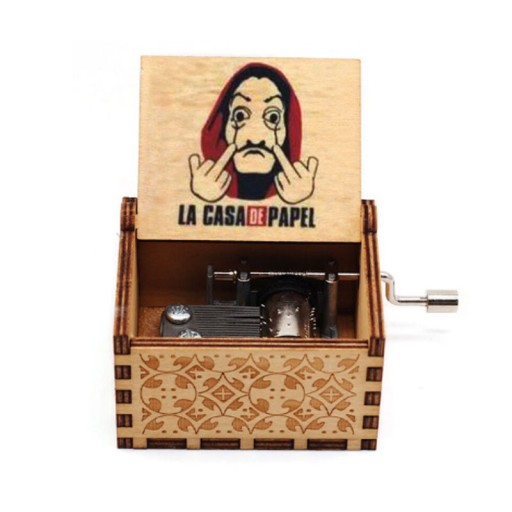 Drewniana pozytywka na korbkę z melodią z serialu DOM Z PAPIERU. Pokręć korbką i usłysz swoją ulubioną melodię. Stylowy gadżet, który upiększy wnętrze Twojego domu.