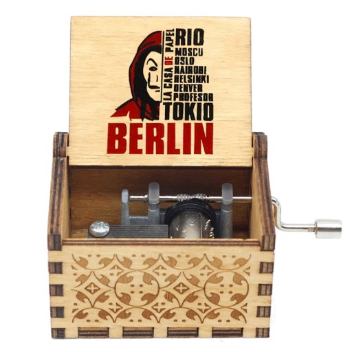 Drewniana pozytywka na korbkę z melodią z serialu DOM Z PAPIERU. Pokręć korbką i usłysz swoją ulubioną melodię. Stylowy gadżet, który upiększy wnętrze Twojego domu.