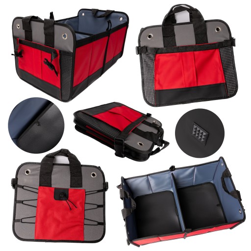 Wielofunkcyjny trwały organizer zarówno do bagażnika jak i na tylną kanapę auta.