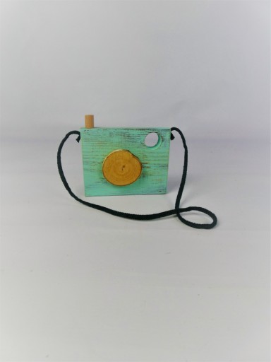Aparat drewniany o wymiarach 13*10*2cm. Z obiektywem z drewna brzozowego.