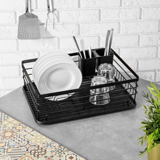 - NIEZBĘDNA - Suszarka do naczyń jest niezbędna w każdym domu. Dzięki niej w łatwy sposób wysuszymy umyte talerze, kubki i sztućce. Pięknie prezentuje się w kuchni.