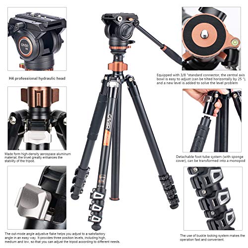 Profesjonalny statyw do kamery wideo, Cayer AF2451 67 cali z głowicą przeciągającą, 4-częściowy kompaktowy statyw z aluminium DSLR rozkładany do monopod, maksymalne obciążenie 60 kg do kamery DSLR, kamery wideo