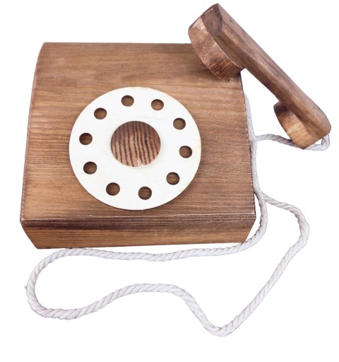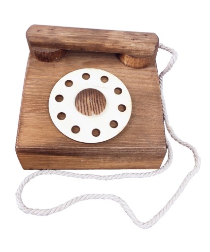 Drewniany telefon stacjonarny o wymiarach 14*12*7cm