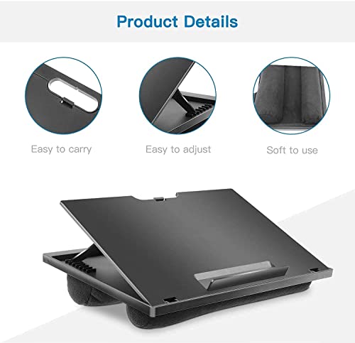 • 【Kompatybilny i komfortowy】 Dzięki rozmiarom 14,8" x 11,1" (37,6 x 28,2 cm) może bez problemu współpracować z różnymi laptopami i tabletami do 15,6 cala. Ergonomicznie zaprojektowane podwójne poduszki pod laptopy są bardzo wygodne. Dzięki swojej unikalnej konstrukcji, podwójna poduszka na spodzie notebooka zapobiega nagrzewaniu się kolan podczas korzystania z niego.