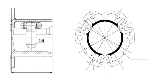 - Uzębienie zewnętrzne od strony koła: 24
