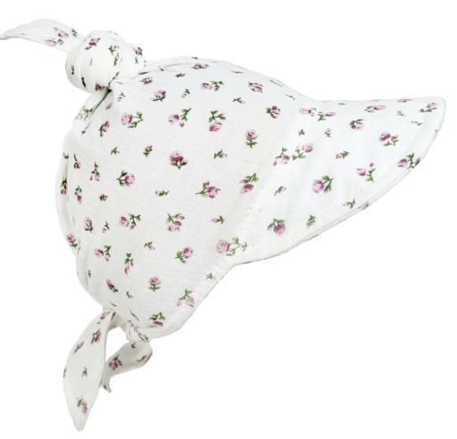 - Regulowana konstrukcja: Chusteczka posiada elastyczny daszek, a całość dzięki wiązaniu u góry i z tyłu może być dowolnie regulowana. Oznacza to, że może ona rosnąć wraz z maluchem, zapewniając idealne dopasowanie.