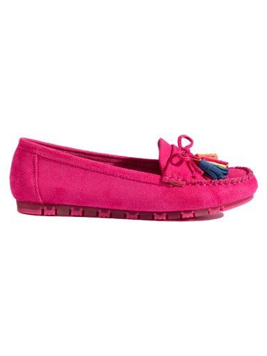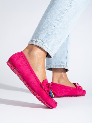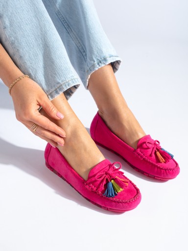 Fuksja zamszowe mokasyny boho z frędzlami rozmiar 37