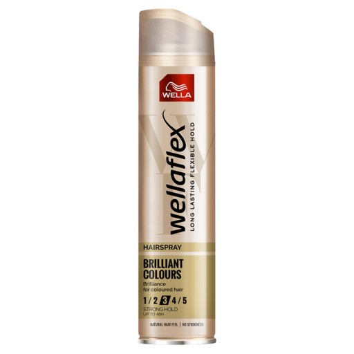 Spray do włosów Wellaflex Colour Brilliance z naszym systemem niezwykle precyzyjnego rozpylania zapewnia włosom długotrwałe, mocne i elastyczne utrwalenie nawet do 48 godzin.