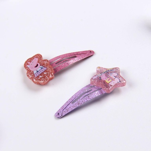 Śliczny zestaw zapakowany w kolorowe pudełko zawiera ozdoby, biżuterię, gumki i spinki, które z pewnością zachwycą każdą fankę Świnki Peppy.
