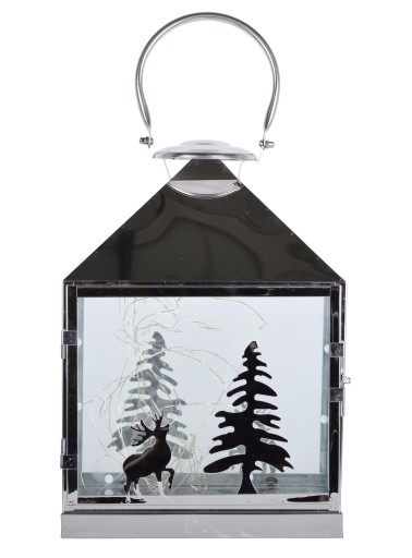 СЕРЕБРЯНЫЙ МЕТАЛЛИЧЕСКИЙ ФОНАРЬ СО СВЕТОДИОДНЫМ ОЛЕНЕМ
