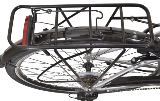 Rower wyposażono w bagażnik, na którym możesz wygodnie przewieźć torbę czy plecak, a także wygodnie zamontować rozmaite akcesoria. W zależności od potrzeb możesz przymocować do niego fotelik dziecięcy, by jeździć na wycieczki całą rodziną, albo torbę czy kosz do przewożenia potrzebnych ci rzeczy. Dodatkowym atutem bagażnika są specjalne linki, które pozwolą na utrzymanie nadmiaru bagażu, dzięki czemu nie musisz się martwić, że Twoje sprawunki, gdzieś się zapodzieją podczas jazdy.