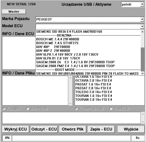 Interfejs GALLETTO 1260 jest narzędziem do odczytu i modyfikacji pamięci flash w komputerze samochodu przez złącze OBD2.Urządzenie współpracuje z wieloma sterownikami silnika,w tym najnowsze sterowniki jak : Bosch EDC15,EDC16,ME9,Siemens PPD1.x oraz inne.