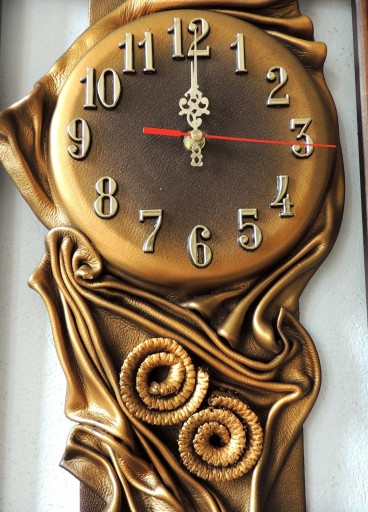Do zaoferowania mamy piękny zegar ze skóry w ramie z litego drewna