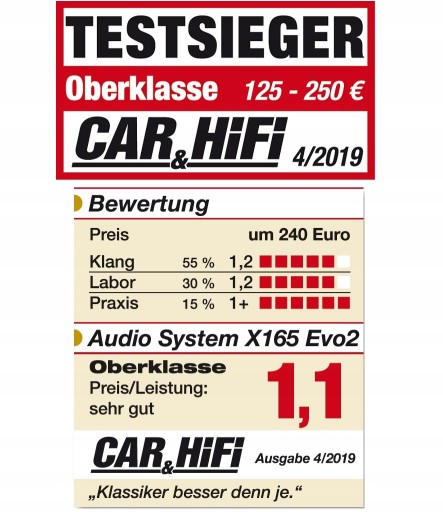 AUDIO SYSTEM X165 evo2 - KOLEJNA WERSJA KULTOWEGO, WYSOKIEJ KLASY ZESTAWU 2-DROŻNEGO W UDOSKONALONEJ, NAJNOWSZEJ WERSJI. FABRYCZNIE NOWY, PEŁNY KOMPLET.