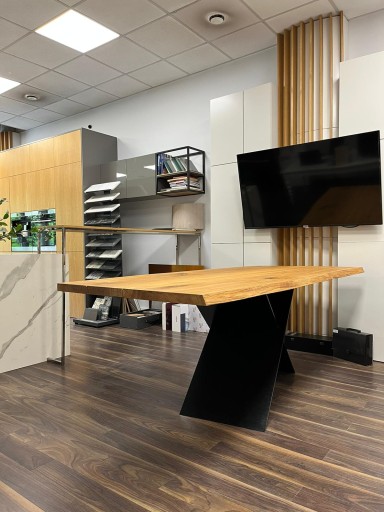 .Stół do jadalni lub innej przestrzeni o oryginalnej formie.