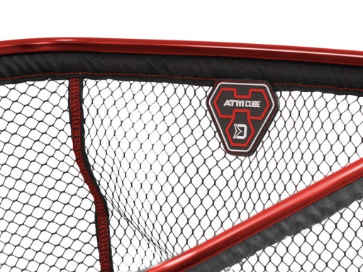 Delphin ATM Floaty RN CUBE to model rozszerzający rodzinę podbieraków pływających z gumowaną siatką. Na pierwszy rzut oka ten bezbłędnie wykonany kosz zachwyca nieszablonowym kształtem. Dzięki precyzyjnemu wykonaniu zapewnia maksymalny komfort użytkowania. Gumowana czarna siatka z czerwonymi przeszyciami jest osadzona w lekkiej, ale bardzo mocnej czerwonej aluminiowej ramie. Dzięki gumowej powłoce siatka nie przenosi niepożądanych zapachów i szybciej schnie. Kosz idealnie pasuje do lekkiej serii sztyc ATOMA, jednak dzięki uniwersalnemu gwintowi pasuje do większości sprzedawanych sztyc na rynku.