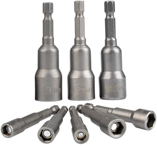 Nasadki wyposażone są w mocny magnes, pozwalający na trzymanie sporej wielkości śrub, oraz gwarantuje pewne ich trzymanie. Nasadki magnetyczne służą do przykręcania i odkręcania śrub oraz nakrętek. Pozwalają one na pracę z dużymi obrotami co znacznie skraca cykl pracy.