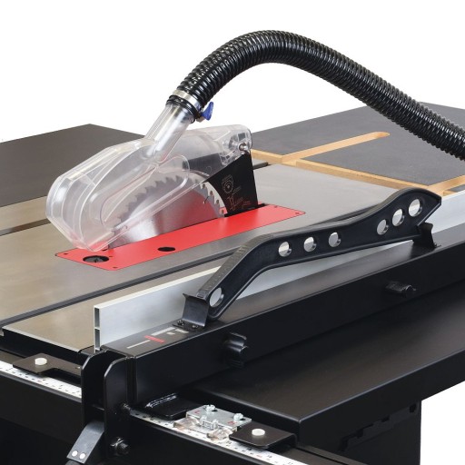 Żeliwne pokretła sterujące z blokadą antyobrotową zapewniają łatwe i precyzyjne pochylenie ostrza od 0° do 45° oraz podnoszenie go w górę i w dół w zależności od potrzeby. Pilarka posiada genialnie zaprojektowany odciąg trocin z dolnej części piły oraz górnej osłony ssącej ostrza. Odciąg pyłu, umieszczony w osłonie ostrza, zapewnia czystą powierzchnię roboczą, a tym samym precyzyjne i wygodne cięcie. Piła wyposażona jest w wylot odpylający o średnicy 100 mm do podłączenia odciągu trocin.